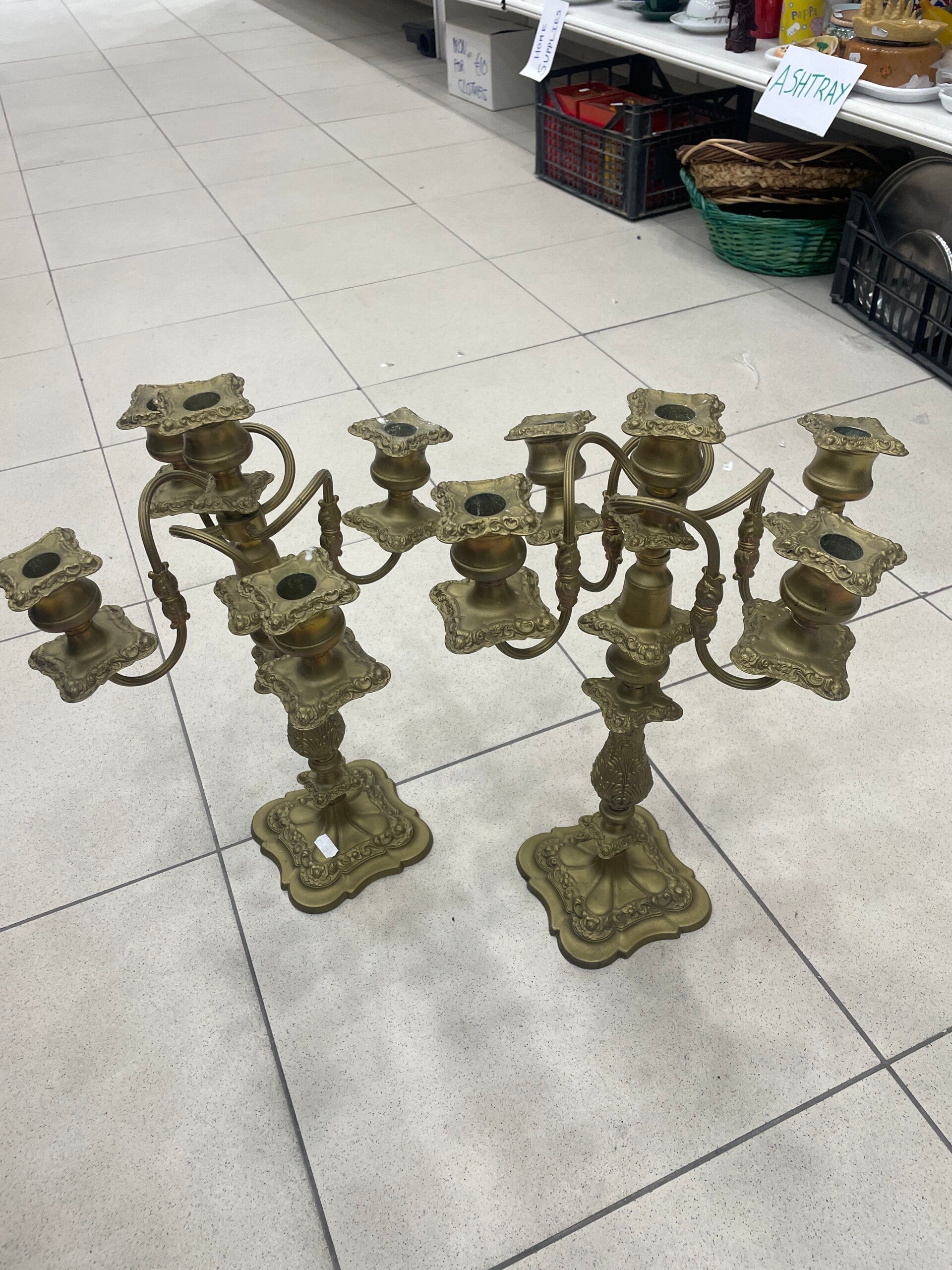 Large Brass Candle Holders - Candles