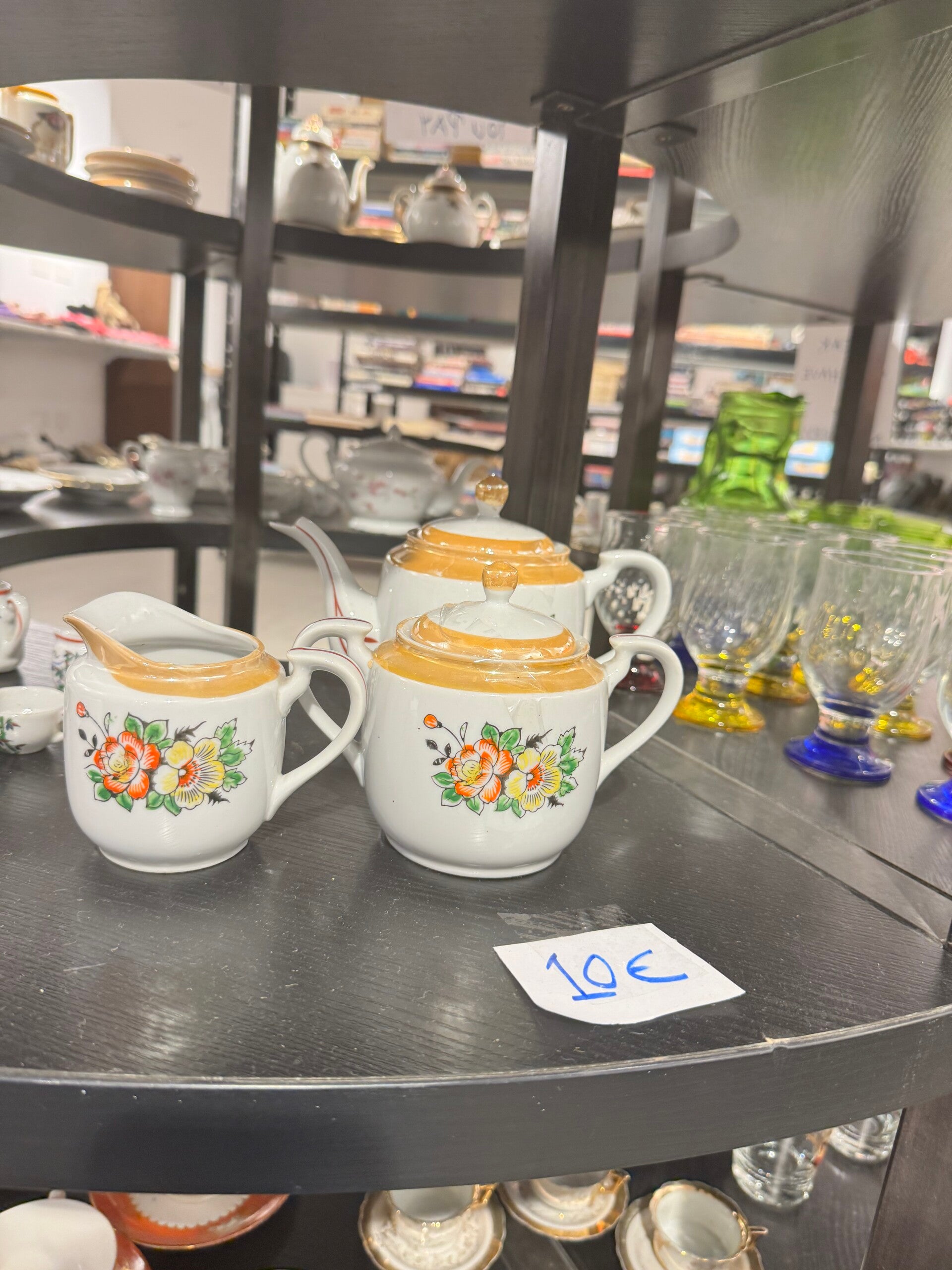 Lusterware Creamer and Sugar Bowl Floral Set - Decor