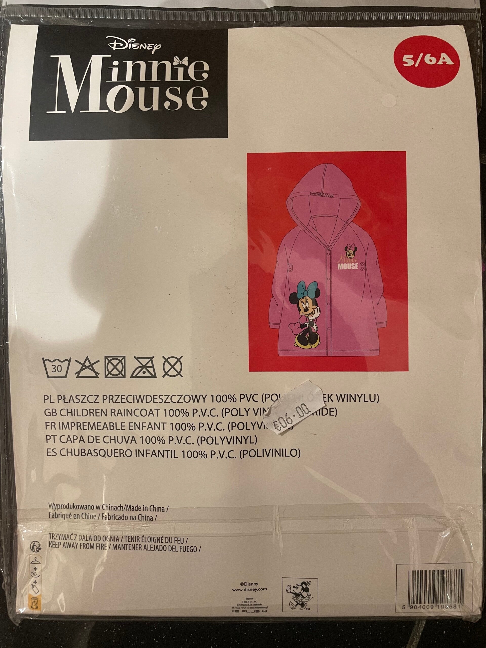 Girls Minnie Raincoat - Size 5/6 Years